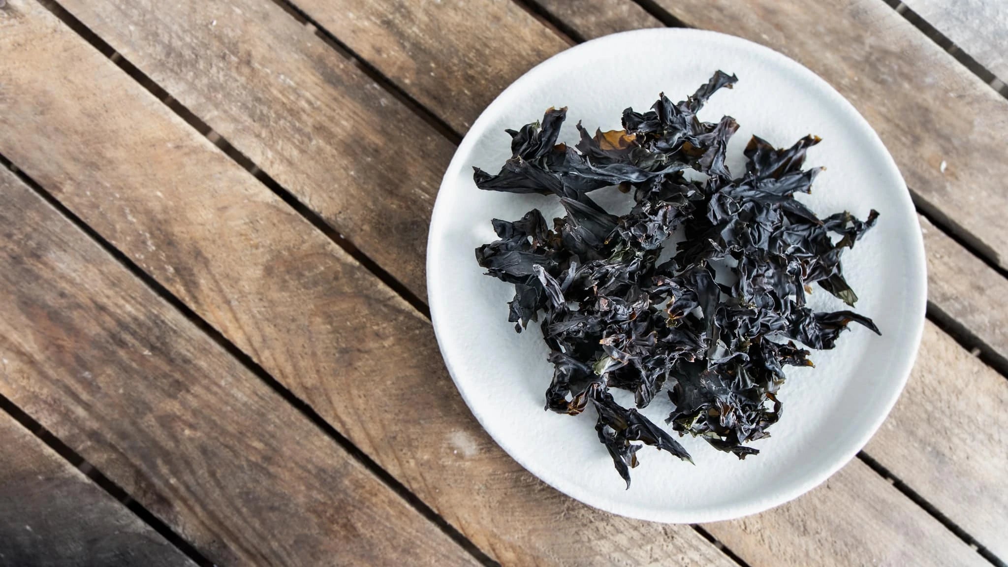 Die weiße, pudrige Substanz auf der Oberfläche getrockneter Algen ist kein Schimmel! Es handelt sich lediglich um die natürlichen Salze und Zucker der Algen, die beim Trocknen an die Oberfläche gelangen. Hier liegt der Umami-Geschmack. Er ist sogar ein Qualitätsmerkmal – je mehr weißes Pulver, desto intensiver der Geschmack!